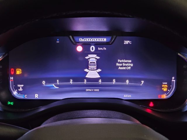 - Laramie Level 2 Equipment Group (Tergicristalli sensibili alla pioggia JHC, display touchscreen da 14,4" RHZ, display interattivo per passeggero anteriore RJA, impianto audio Harman Kardon Premium da 19 casse RCA, display a colori TFT fronte volante da 12" JAN, portellone posteriore elettrico JRC, Uconnect 5 NAV W 14,4" UPW)